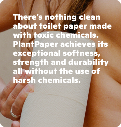 Until recently, almost all toilet paper was made with chlorinated bleach, which, when combined with organic substances like tree pulp, produces dioxins, a class of highly toxic compound considered a “persistent organic pollutant” because of how difficult they are to eradicate. In the last few years, as the damaging effects of bleach on our bodies and the environment became harder to ignore, paper mills in North America have largely switched to an ECF (Elemental Chlorine Free) process. This is an improvement over earlier methods, but numerous studies have confirmed that ECF bleaching still results in the formation of dioxins. That’s why we chose to make PlantPaper with zero bleach of any kind.